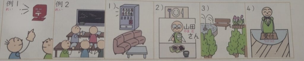 而最前面的「場所名詞」中,除了可以是該場所的名稱外,還可以是ここ/そこ/あそこ,表達「這裡/那裡」的意思,詳細解說可按此重溫。