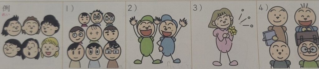 4)  学生が何人いますか。 4人います。 有多少名學生? 有4名。