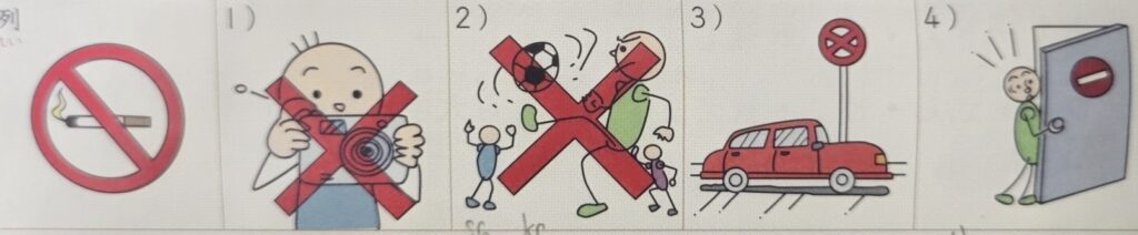 2) ここでサッカーをしてはいけません。這裡禁止踢足球。