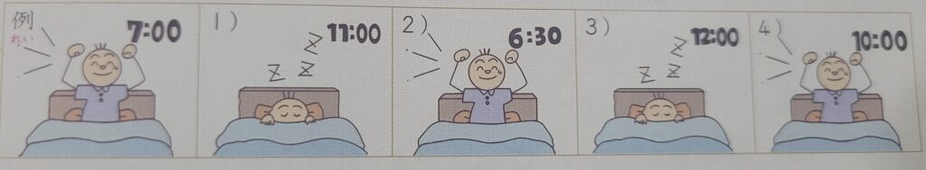 4) 日曜日何時に起きますか。 10時に起きます。 星期日在何時起床? 在10時起床。
