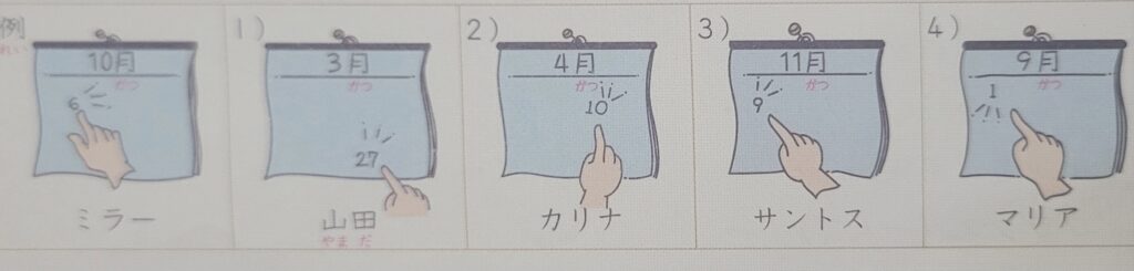 2) カリナさんの誕生日はいつですか。 4月10日です。カリナ先生在何時生日? 在4月10日。