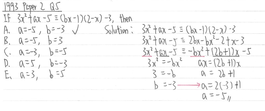 以下是與恆等式(Identities)相關,於1993至2011年考問過的香港中學會考題目。