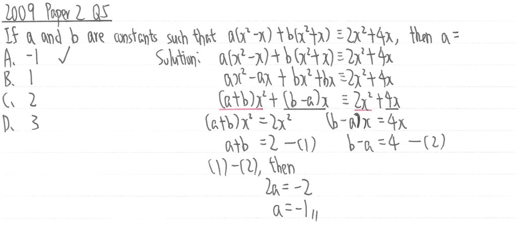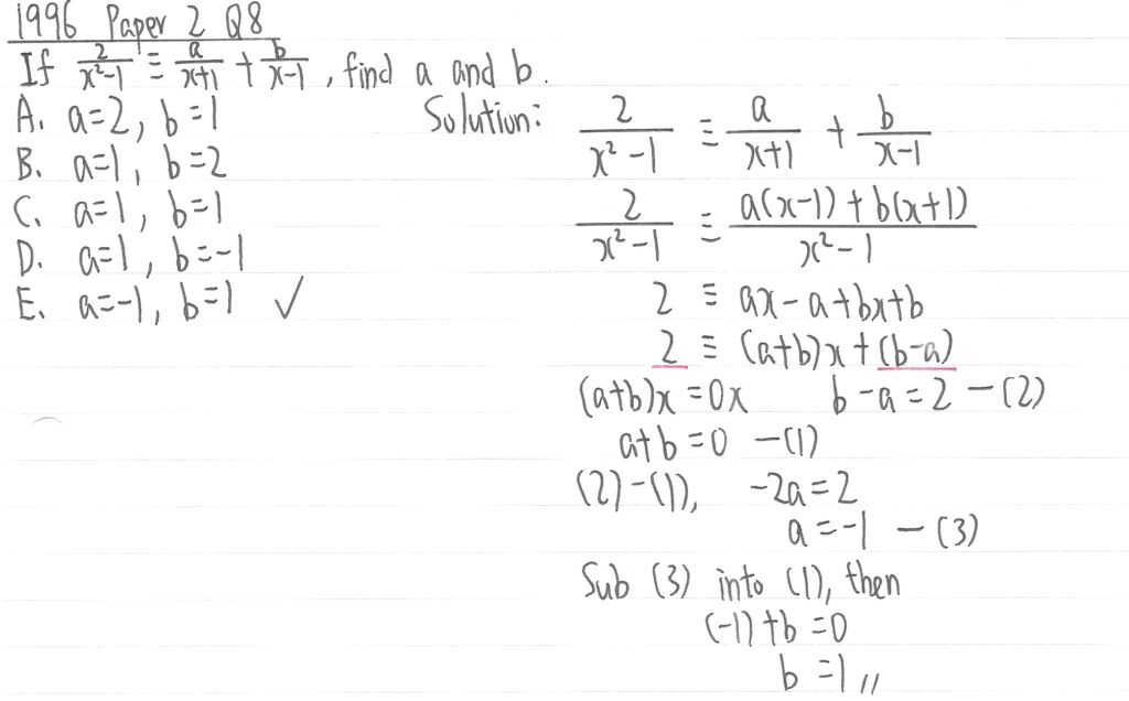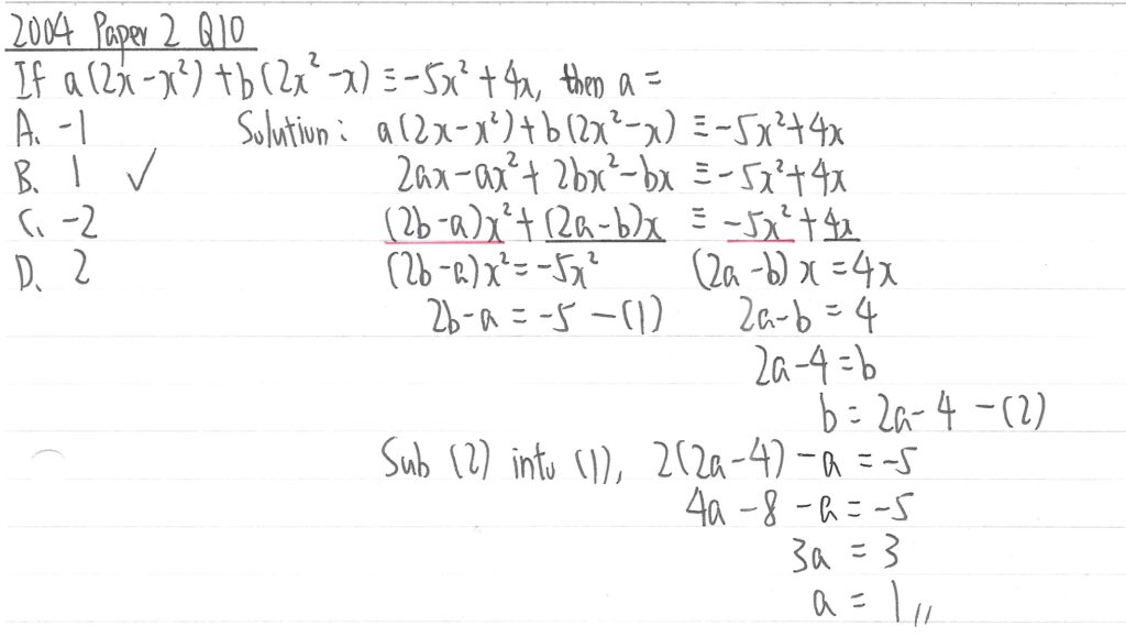 此題其實是夾雜了二元一次方程式,但只需把(1)式減去(2)式,使b消失後便可求到a的值。
