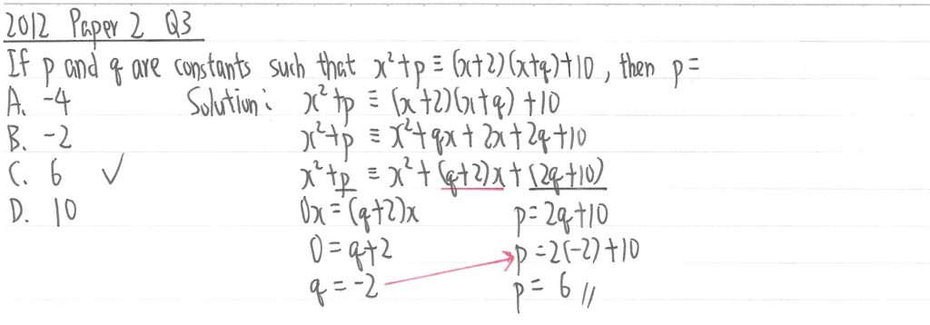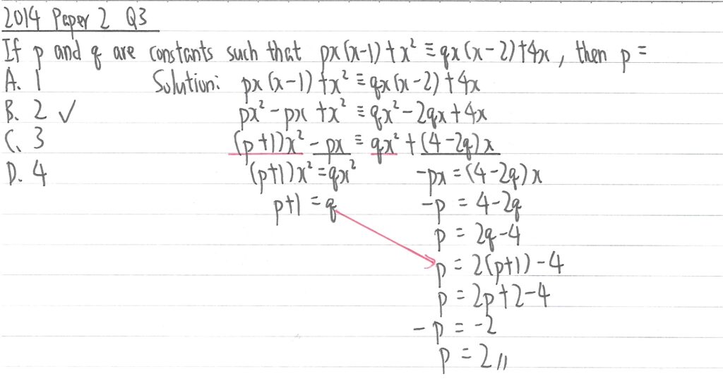 經計算出多項式表示方法後,發現左邊沒有x項,其實可以當作0個x作運算,從而出q的值。