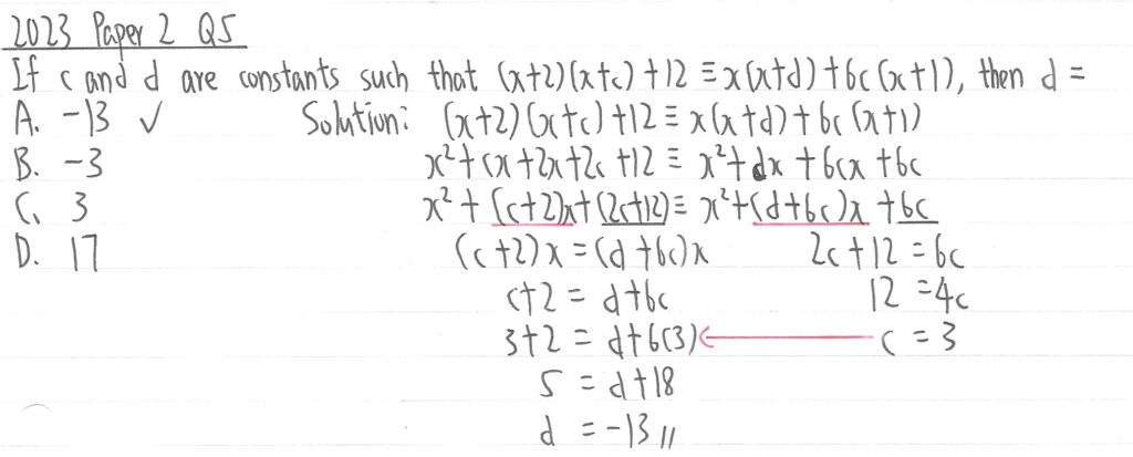 與恆等式相關的DSE考試題目,其中一項就是題目會有一條恆等式,左右兩邊可以經運算組成多項式,而多項式中的部份項的係數是一個未知數。我們可以做的,就是左右兩邊找出同類項,然後左右兩邊找出做,並以代數方程式的方法,計出各未知數的數值。此等題目由2012年開始DSE,直至2025年,都是在卷二中獨立出一題,唯題目考問的可能會同時涉及其他課題。