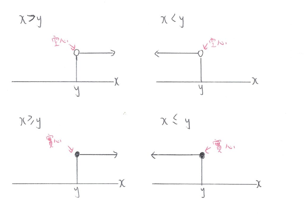 而四種情況的數線展示方法如下