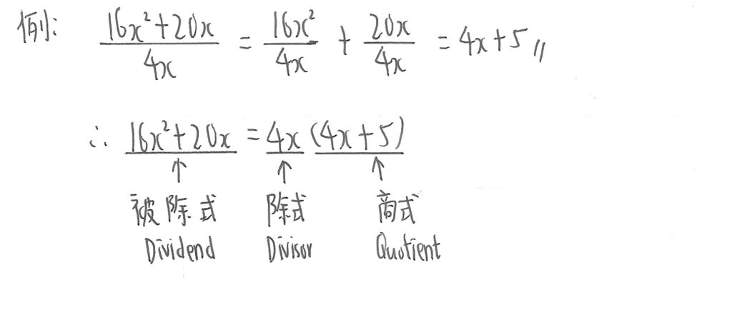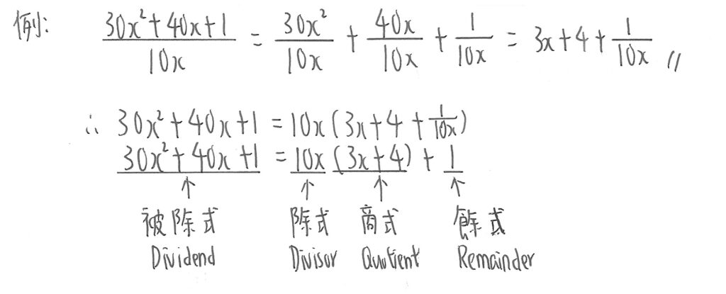 被除式(Dividend) = 除式(Divisor) x 商式(Quotient) + 餘式(Remainder)