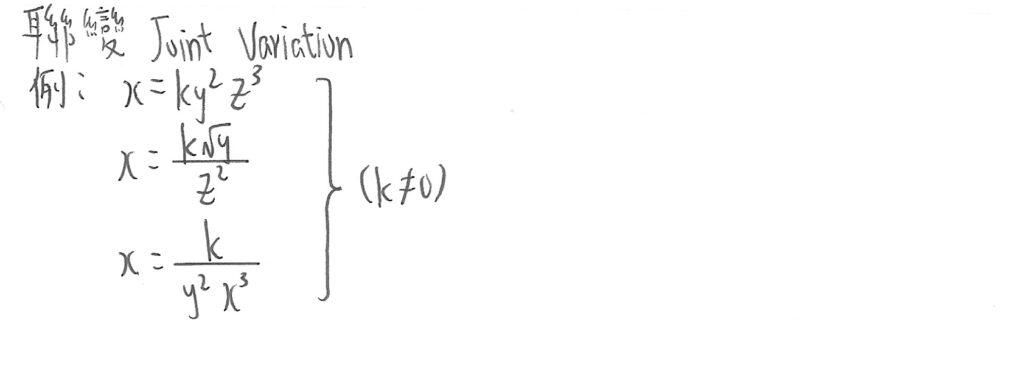 上面示範了三種當出現當x與兩個未知數有變分時的情況。考慮最多就只會問到x隨兩個未知數正變/反變。
