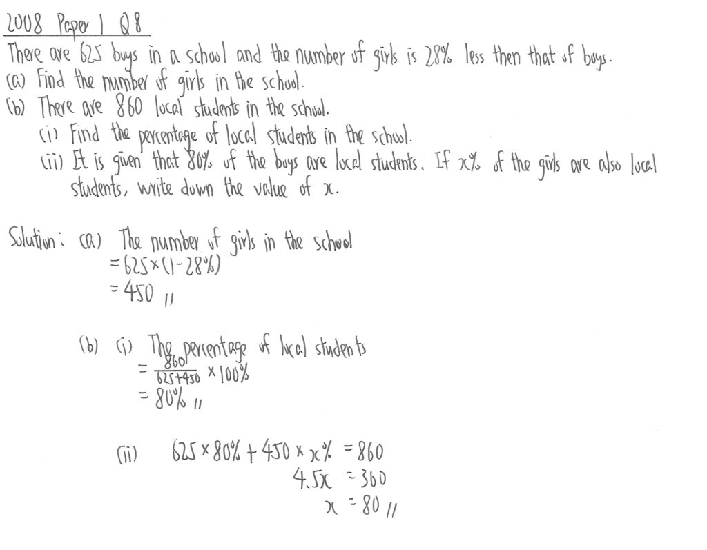 (ii)問其實可理解為全校男生中有80%是本地人,所以女生中也應有80%是本地人。