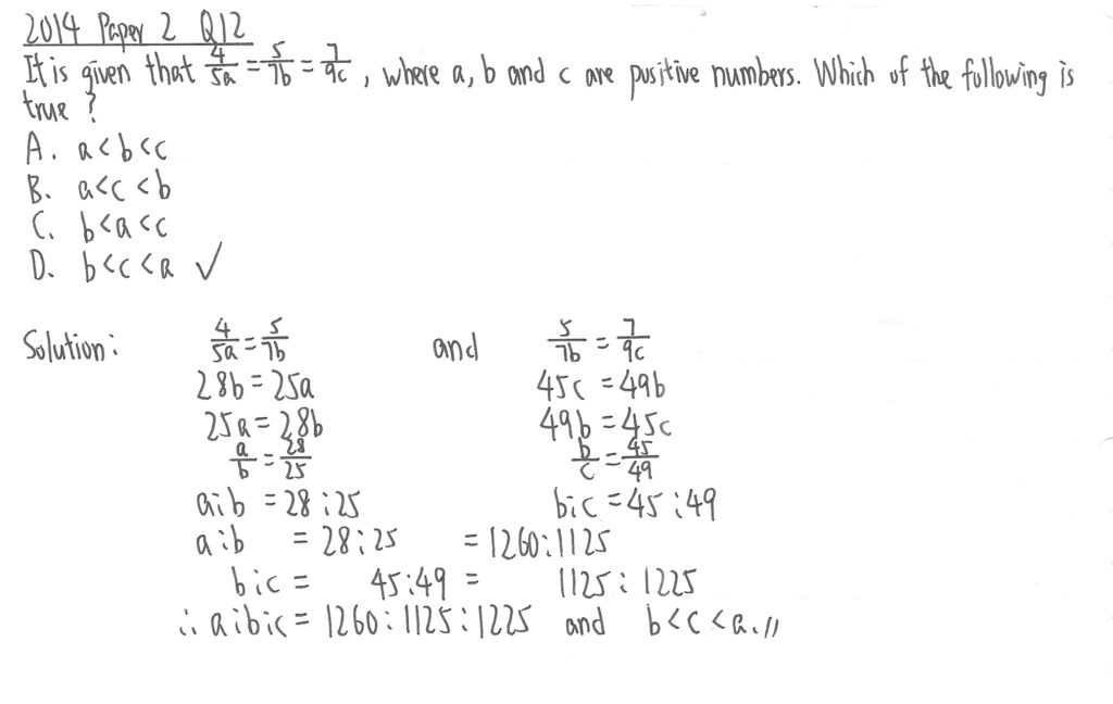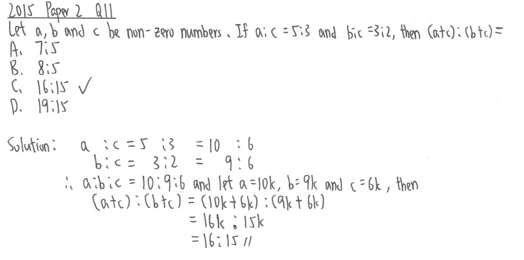 部份題目用了k方法作解說,但考試時卷二無需列出步驟,所以可以不用設k去計算。