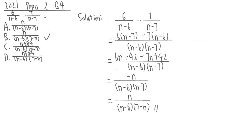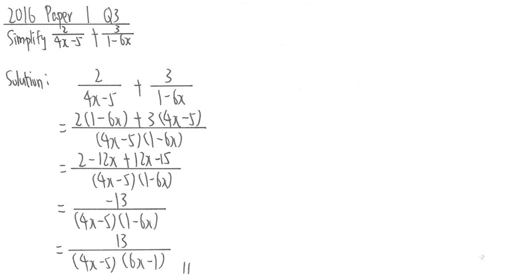 當分子及分母各自乘以-1時,記得分母只可以把其中一個括號內的數值正負調轉,否則分母便出現乘以兩次-1,改變了分數的數值。